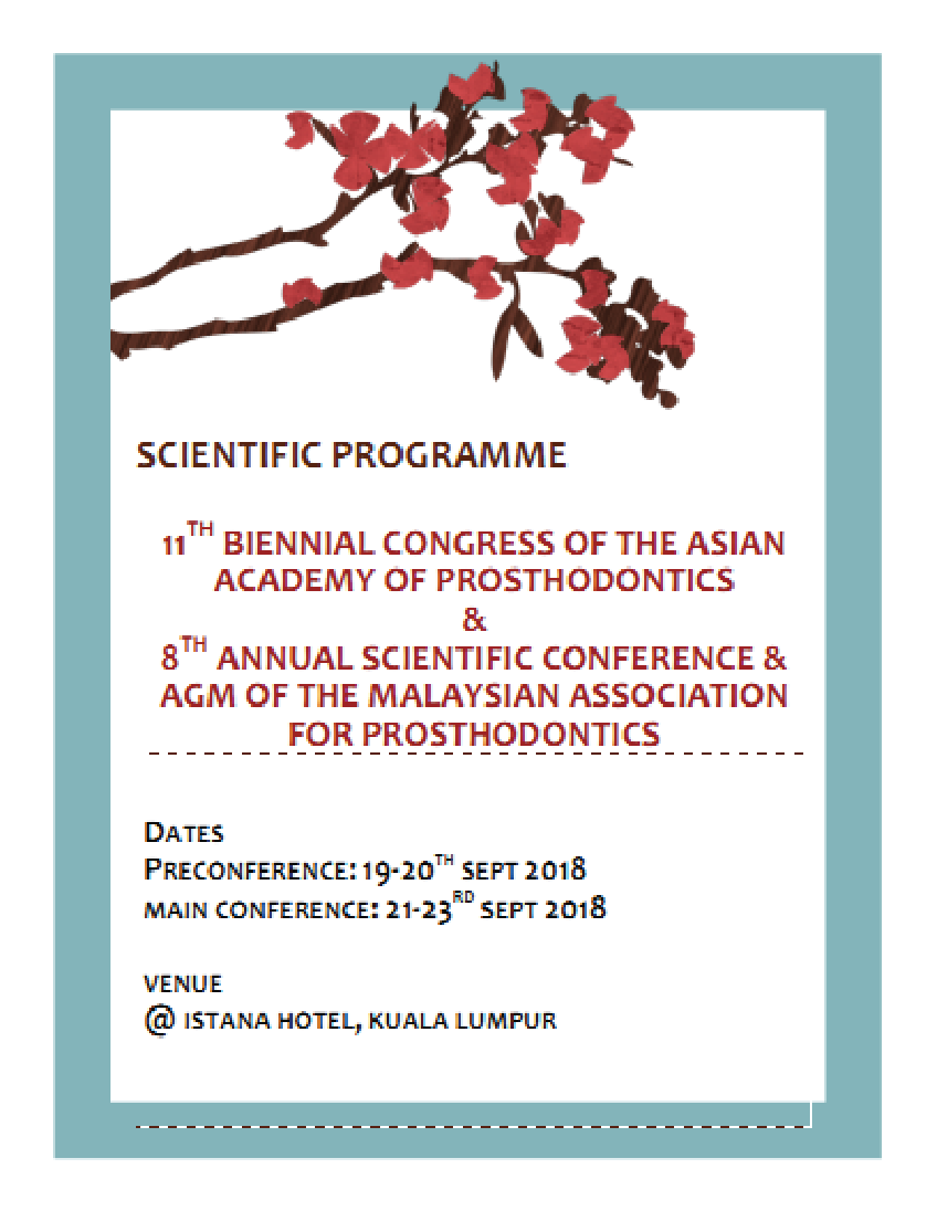 in conjunction with 8th Scientific Conference & AGM of Malaysian Associations for Prosthodontics http://www.aap2018.maprostho.com.my/