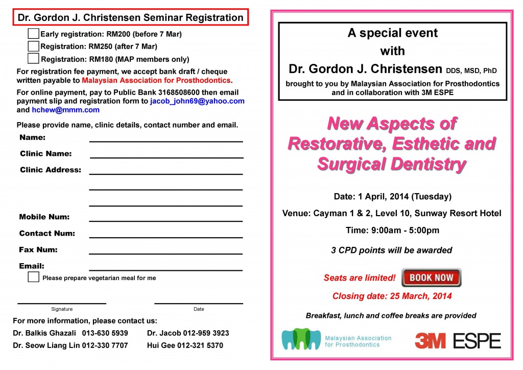 Cayman 1, Level 10, Sunway Resort Hotel Speaker - Dr. Gordon J. Christensen 9:00am - 5:00pm