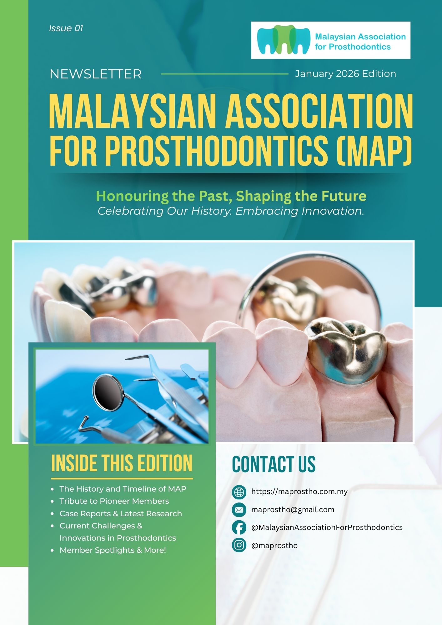 We are proud to unveil the 1st Edition of the MAP Newsletter. This inaugural issue celebrates the profound journey of prosthodontics from its historical foundations to its vital role in modern clinical practice.